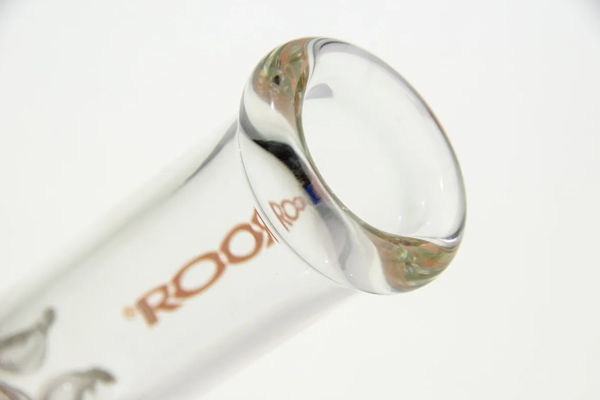 The ROOR bong comes with a removable downstem poking from the piece at a 45-degree angle. The clear glass also features ice dimples for those who like cool, smooth smoke.